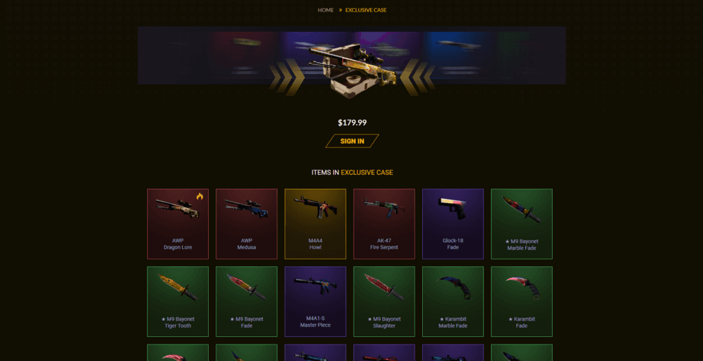 - Use said currency to purchased a "case" which would give you a chance to get a more valuable item
